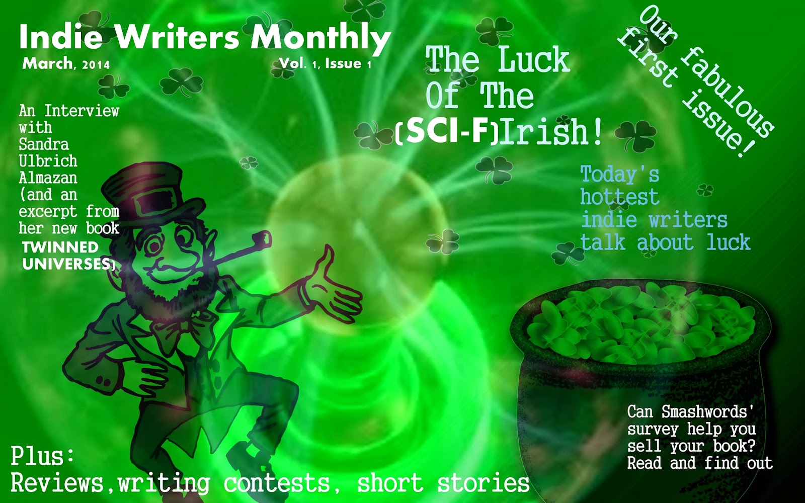 Happy March to everyone! I'm blogging on the weekend to announce that the first issue of Indie Writers Monthly is out! This issue has a luck theme. It includes an interview with me, one of my blog posts from Scene 13, and an excerpt from Twinned Universes. In addition, you can also find essays on writing and marketing, book reviews, and a short story. It's currently free, but I think the price will go up to $0.99 after March 5th. Get it today, and look for our weather-themed issue next month!
